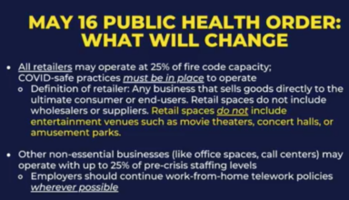 New health orders issued by Gov. Michelle Lujan Grisham on Friday means churches may now operate at 25% occupancy beginning this week. Prior health orders by Lujan Grisham had set the threshold at 10% after closing churches earlier due to the coronavirus pandemic. “They have to maintain COVID-safe practices,” Lujan Grisham said, which includes wearing masks. All retailers and office spaces can now …